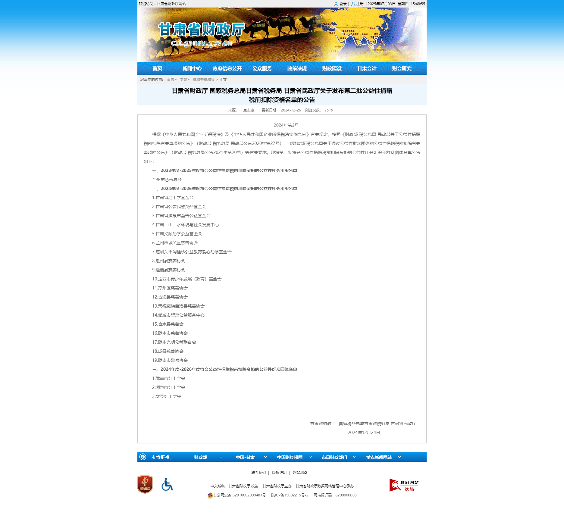 甘肅省財政廳 國家稅務(wù)總局甘肅省稅務(wù)局 甘肅省民政廳關(guān)于發(fā)布第二批公益性捐贈稅前扣除資格名單.png