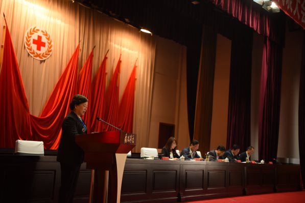 市紅十字會(huì)黨組書記、常務(wù)副會(huì)長(zhǎng)張改英作工作報(bào)告